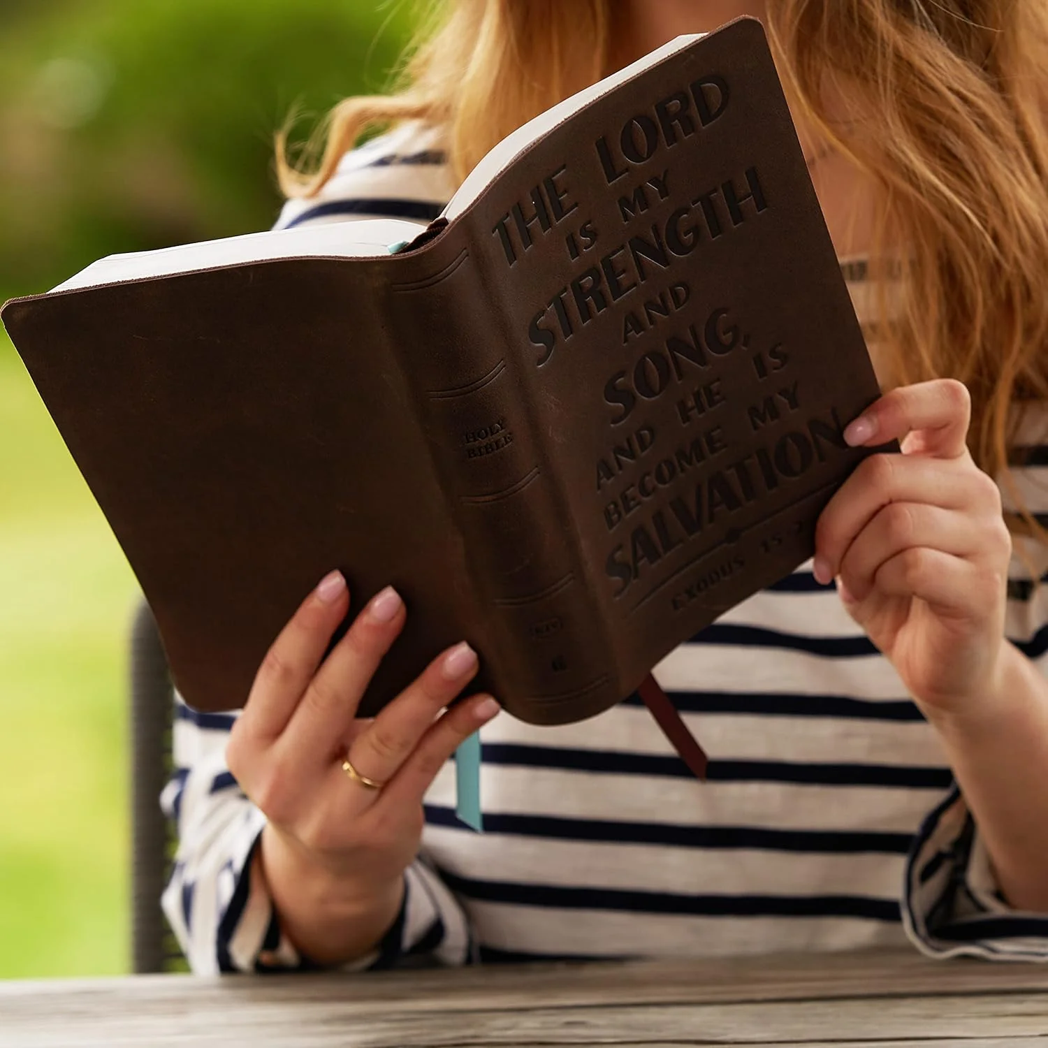 Crafted to be an easy-to-carry large print Bible with cross references and striking verse imprinted on the cover allows this Bible to be an ideal choice to take with you wherever you go. This edition is published in large KJV Comfort Print type, which was designed exclusively for Thomas Nelson to be the most readable at any size.
